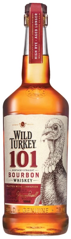 Wild Turkey 101 Proof, ikonická bourbon whiskey z Kentucky s vysokým obsahem žita zrající 6-8 let v sudech z amerického bílého dubu, hluboce vypálených na Char No. 4 (tzv. Alligator char). Již více než 60 let vyrábí legendární Master Distiller Jimmy Russell bourbon tím správným způsobem. Začíná to, když hlavní palírník vybere kukuřičný, žitný a ječmenný slad k destilaci. V lihovaru Wild Turkey používají pouze speciálně pěstovaná geneticky nemodifikovaná zrna, která jsou čtyřikrát testována na kvalitu. Voda pochází z řeky Kentucky a je přirozeně filtrována přes vápenec, čímž se odstraní železo a další nečistoty. Díky silně vypáleným sudům má kaštanovou barvu. Ve vůni jsou cítit hluboké tóny vanilky a dubu se stopami citrusů a karamelu. Bohatá chuť plná vanilky a karamelu s tóny karamelek a lehkého kouře. Dlouhé a bohaté zakončení s plným tělem. Jak říká Jimmy Russel: Stejně jako řeka Kentucky, je i Wild Turkey 101 mocný, odvážný a vyžaduje si svůj vlastní čas.