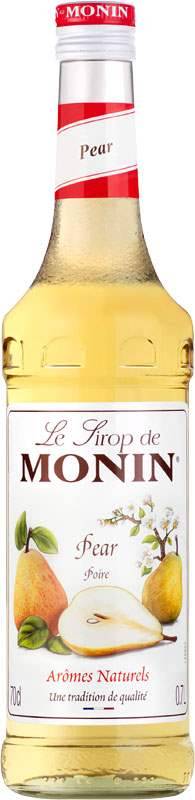MONIN Pear se vyznačuje lahodnou chutí zralé hrušky Williams (většinou velmi sladká a aromatická). Je ideální jako přísada do koktejlů a nealkoholických nápojů.